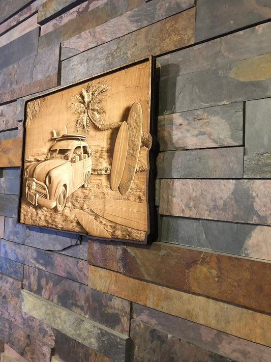 Surfboard Wall Decor – Wood Engraved Ocean Artwork