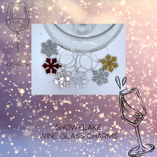 Set of 6 Sparkling Snowflake Wine Charms – Glitter and Mirror Acrylic for Winter Celebrations