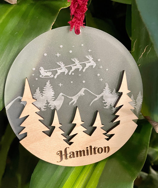Santa in the Sky Ornament | Christmas Ornament | Santa Ornament | Custom Engrave Ornament | Personalized Christmas Ornament | Gift Tag