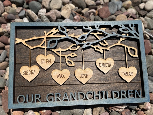 Custom Laser Cut Family Frame with Dangling Hearts – Sentimental Photo Gift