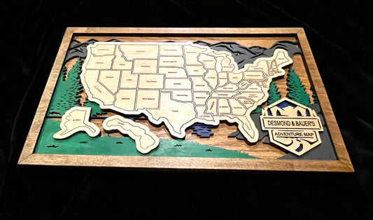 Customizable Wooden Travel Map, USA Travel Map, Engraved Travel Map, Adventure Map, Map Artwork, Removable States Map