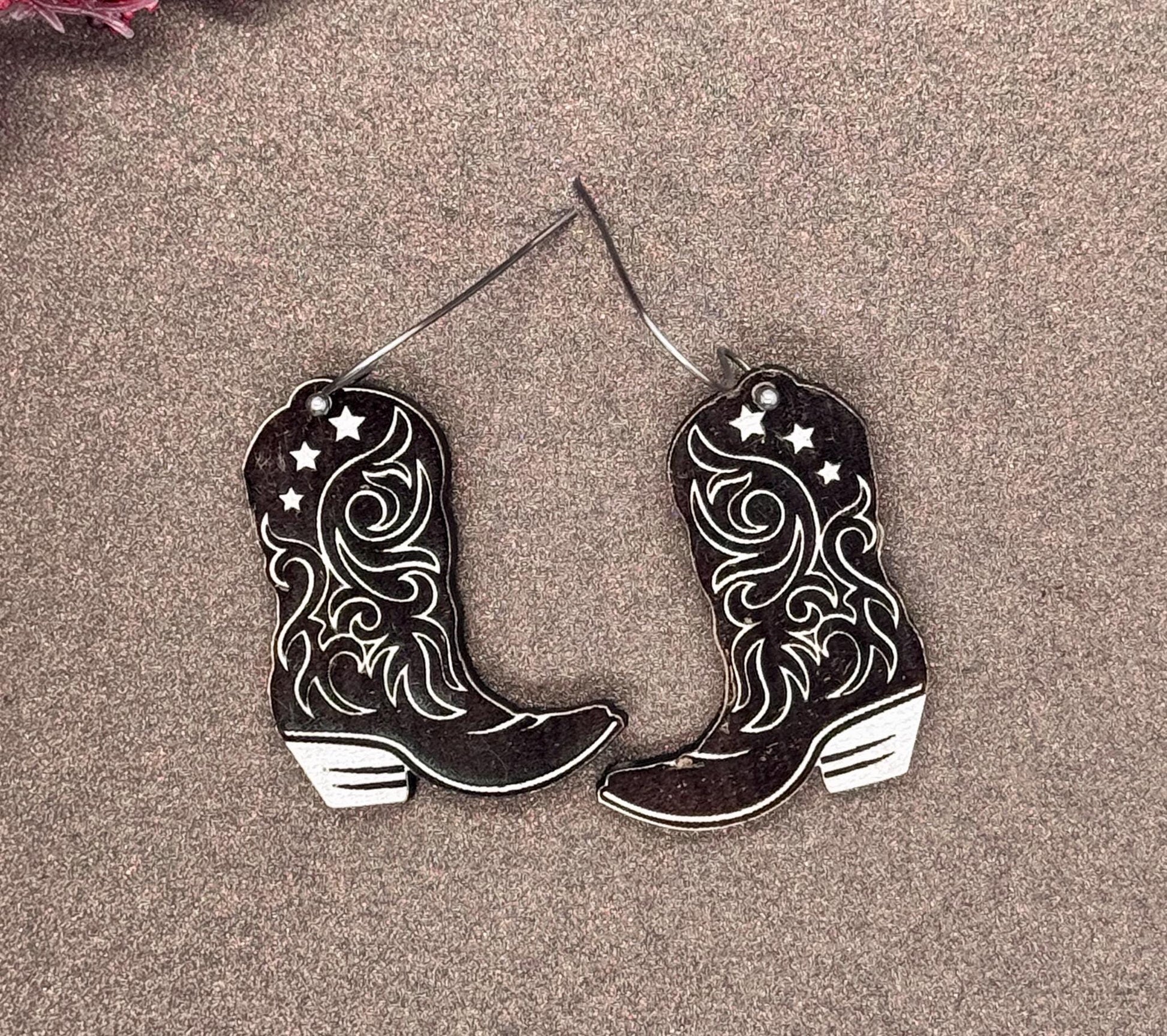 Yeehaw! Add a touch of Western charm to your style with these laser-cut and engraved cowboy boot earrings. Made from lightweight 1/8-inch wood, each pair is designed for comfort and flair, measuring 2 inches long by 1.2 inches wide—the perfect size to make a statement!
