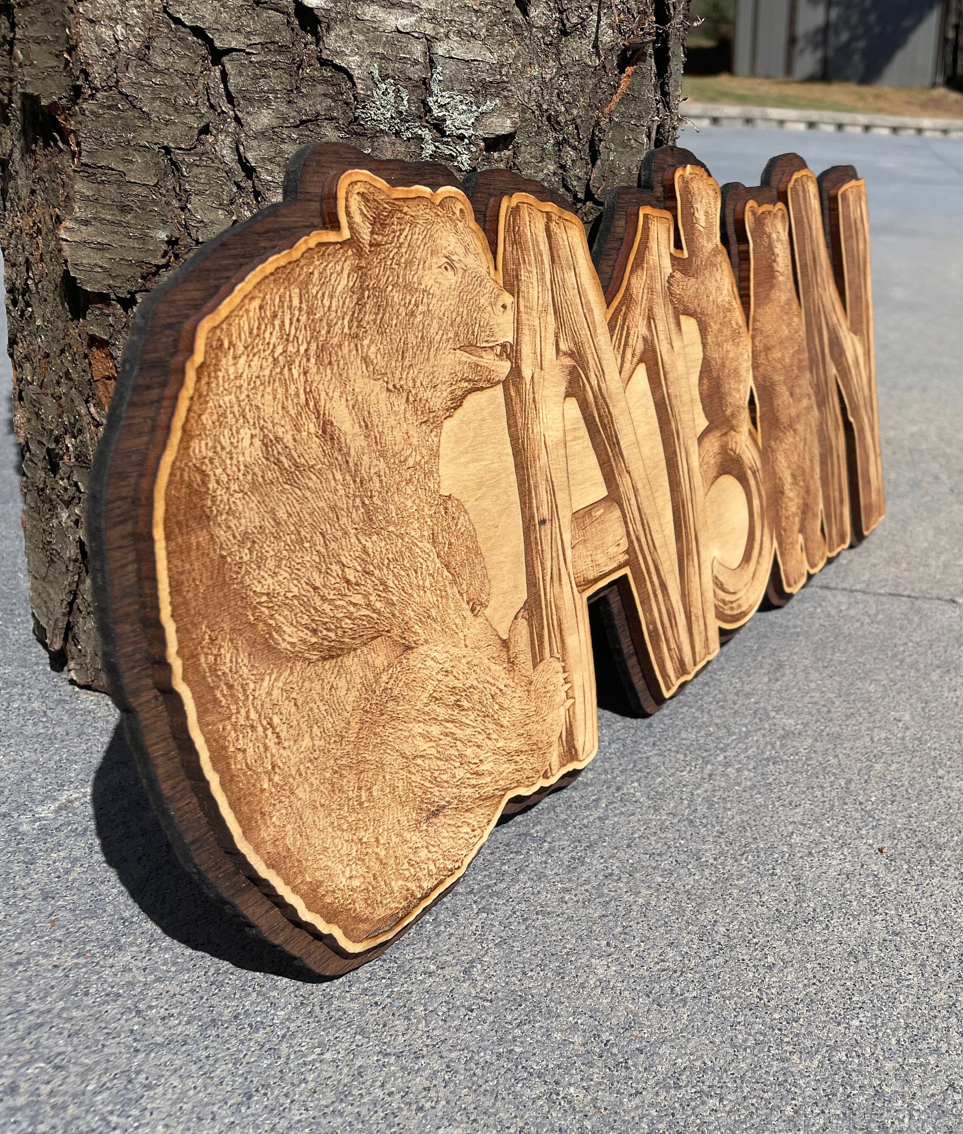 Cabin Illusion Sign, Bears and Cabin Sign, 3D Illusion Cabin Artwork, Bears Artwork, Wooden Cabin Wall Decor