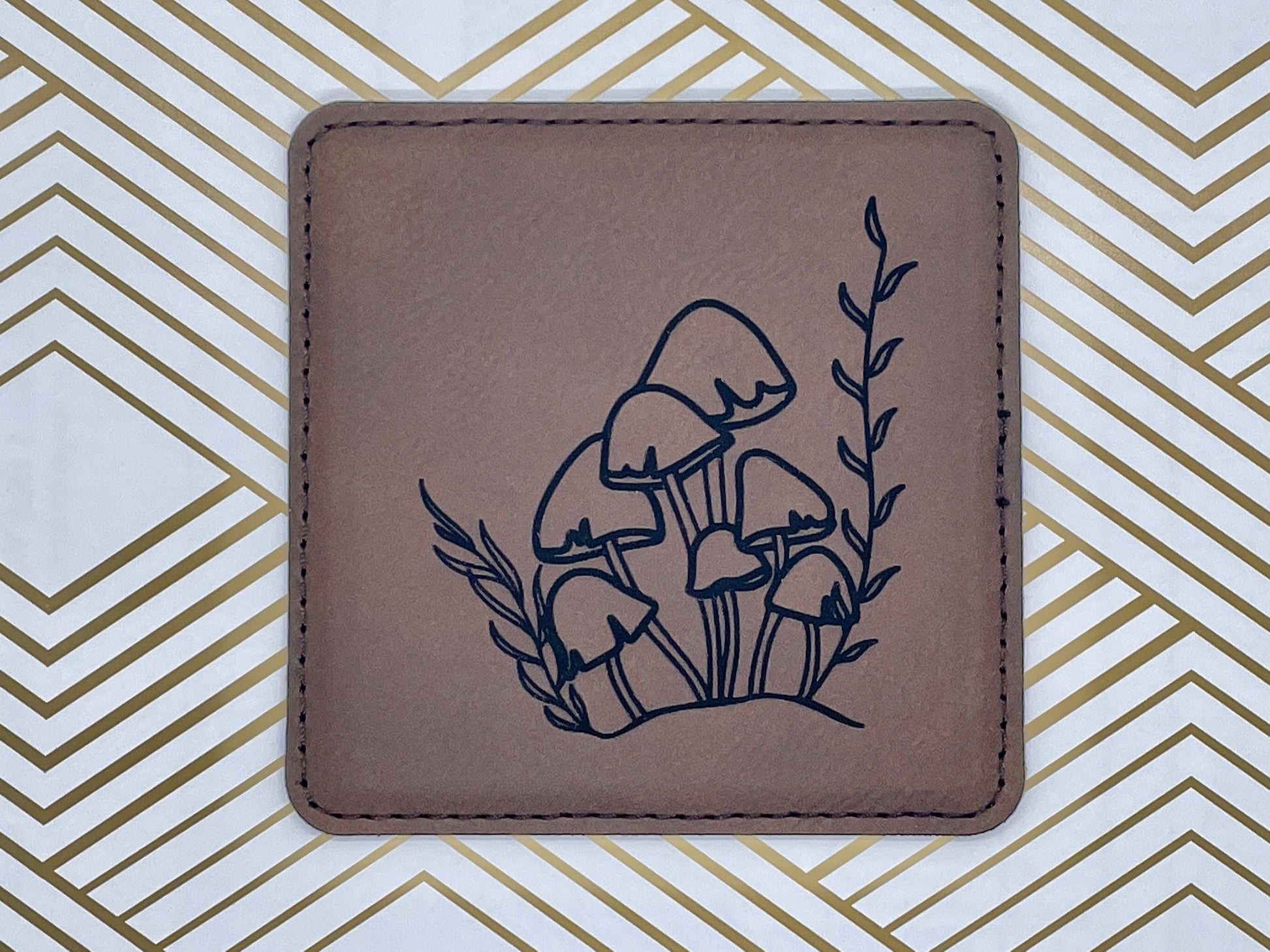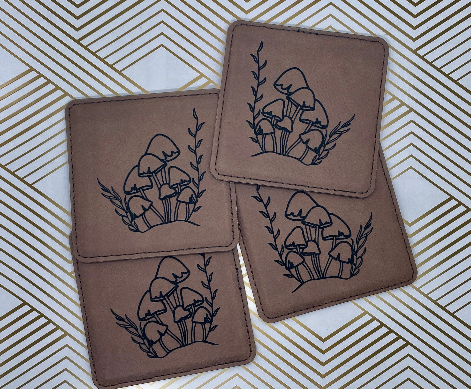Engraved Mushroom Leather Coasters – Set of Four