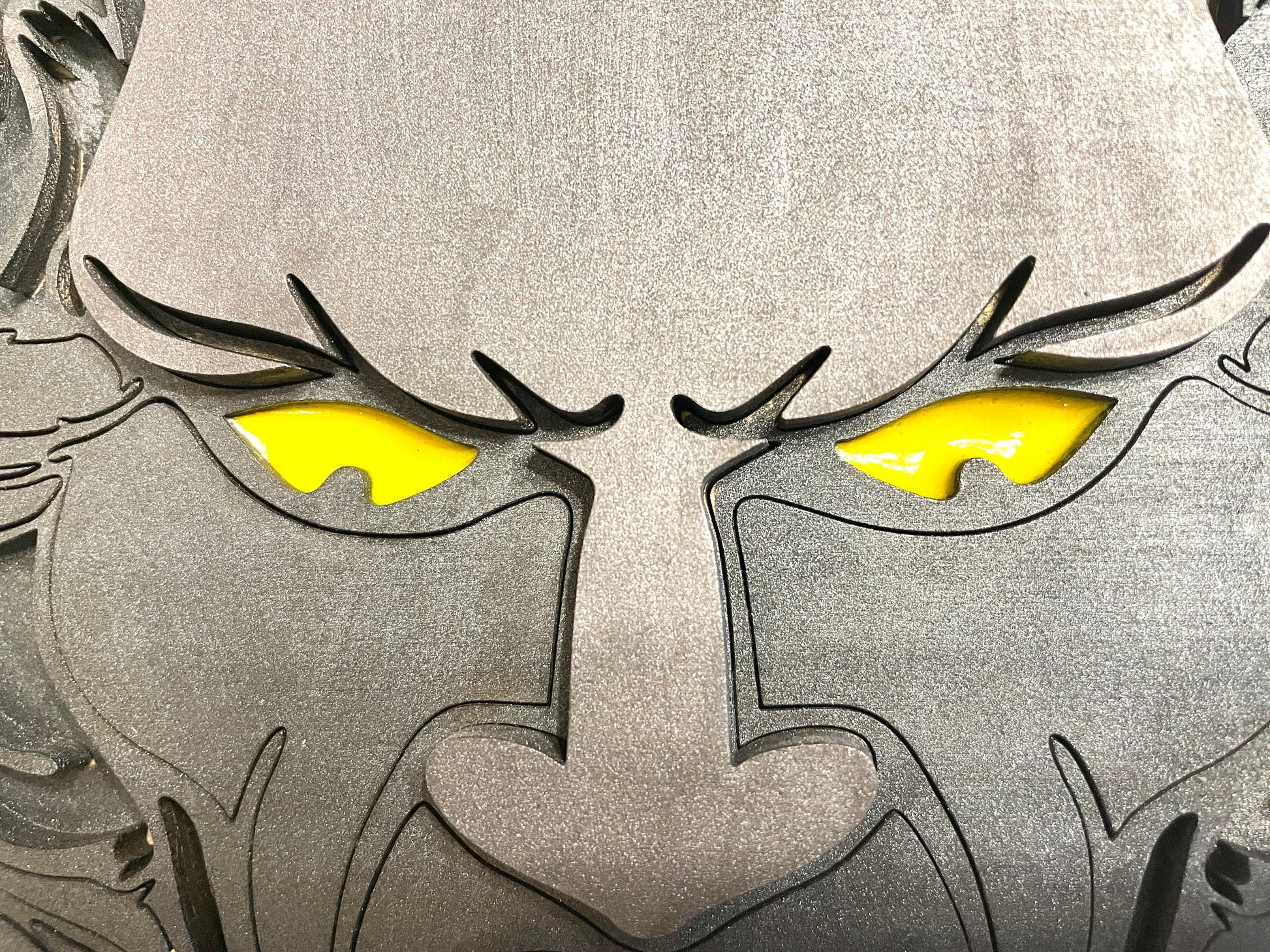 Transform your space into a scene straight out of a horror story with this terrifyingly unique wooden door knocker! Crafted with care and painted using vibrant unicorn spit for a one-of-a-kind finish, this haunting piece features piercing yellow resin-filled eyes that seem to glow with an eerie intensity.