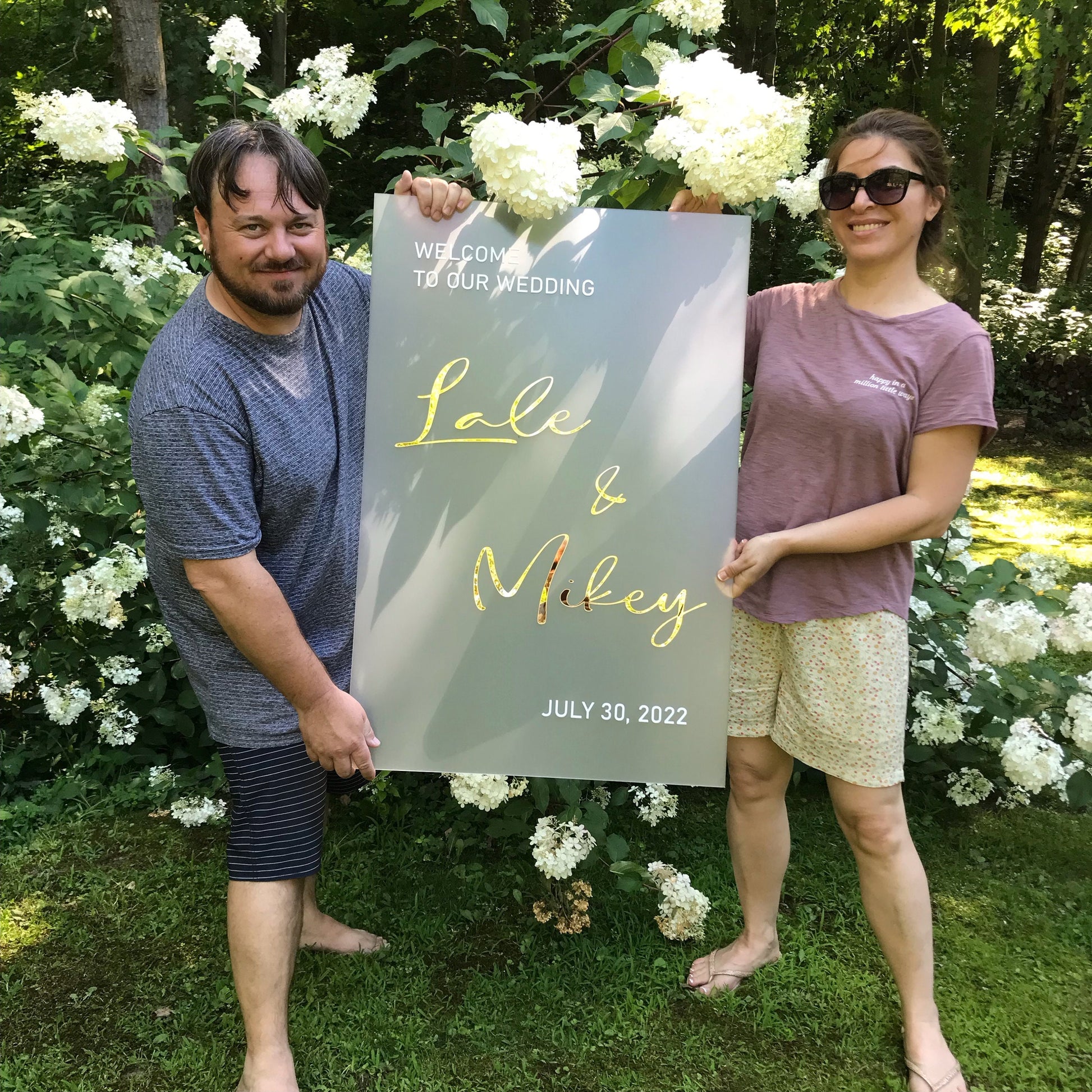 Transform your space with our Large Custom Sign, crafted on a stunning 2 ft x 3 ft frosted acrylic background for a sleek and modern aesthetic. Featuring elegant gold mirror and white acrylic lettering, this sign is designed to make a statement, whether for home décor, events, or business branding.
