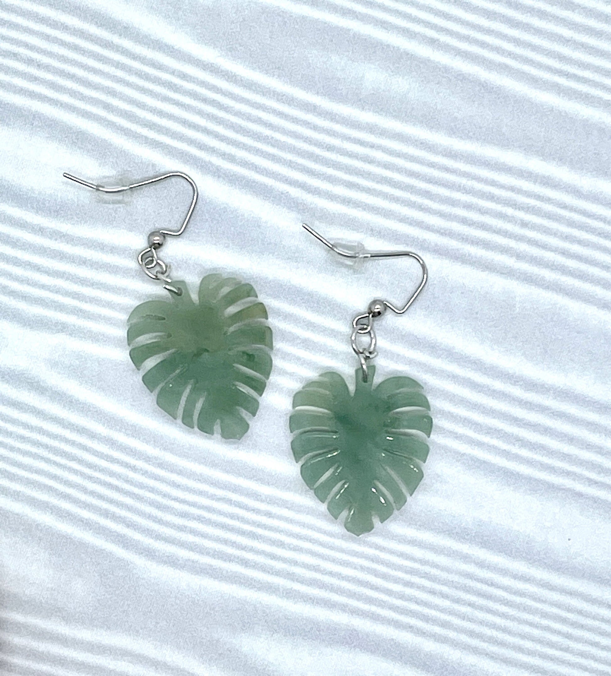 Monstera Leaf Dangling Earrings, Green Acrylic Monstera Leaf, Monstera Jewelry