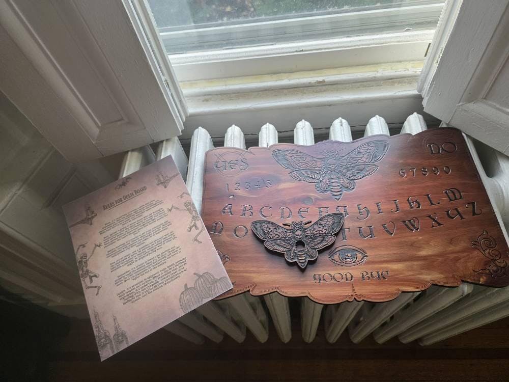 Whether you're an experienced practitioner or a curious beginner, this Ouija board is the perfect way to add a spooky twist to your holiday decor. It's an excellent addition to your collection of occult and spiritual tools or makes a unique gift for someone interested in the supernatural.